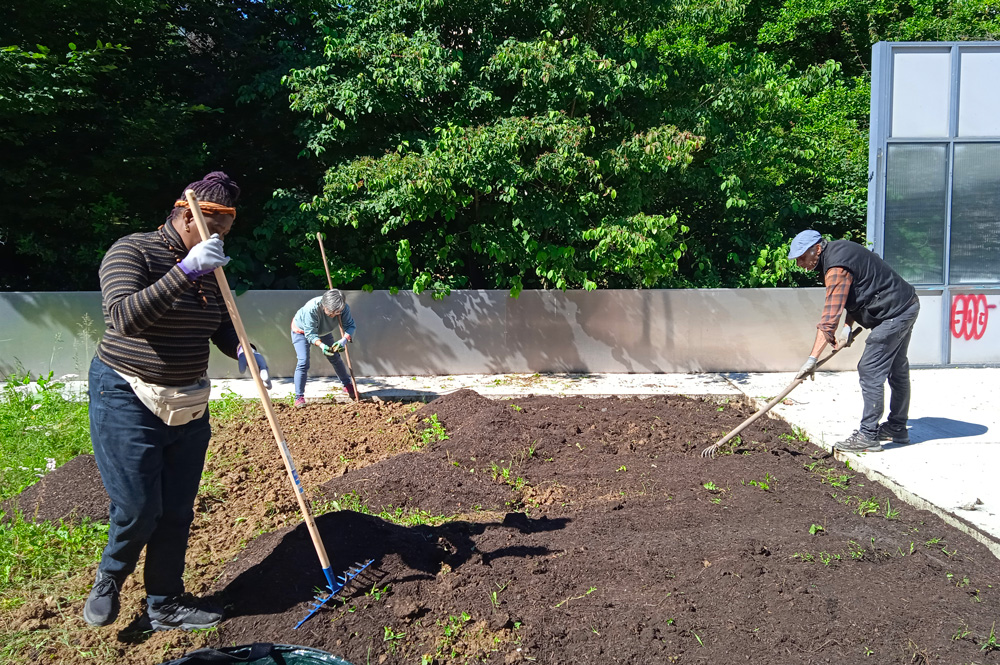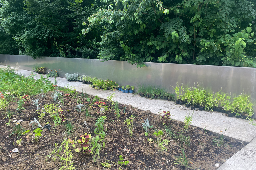 Ce printemps 2025, nous avons fait un gros travail de préparation du sol argileux par l’apport de compost, de terreau, de substrat récupéré de la champignonnière Champiloop à Eybens, sur toute la surface disponible. Collectivement, nous avons choisi et listé les plantes aromatiques et florales et élaboré un plan de sorte à distribuer les plants selon leur besoin d’exposition et à ménager des chemins d’accès pour former un ensemble fonctionnel et esthétique. Des plants en godets ont été achetés auprès de la Ferme Aromatique à Varces et de Mille pousses à Grenoble, pour une plantation échelonnée d’avril à juin. Des bénévoles ont été sollicités pour constituer une équipe d’entretien et d’arrosage du jardin pour toute la période estivale. L’activité de cueillette, de séchage sur des claies ou en suspension dans la yourte, s’est échelonnée tout au long de l’été et de l’automne en fonction des espèces et de la générosité des plants.